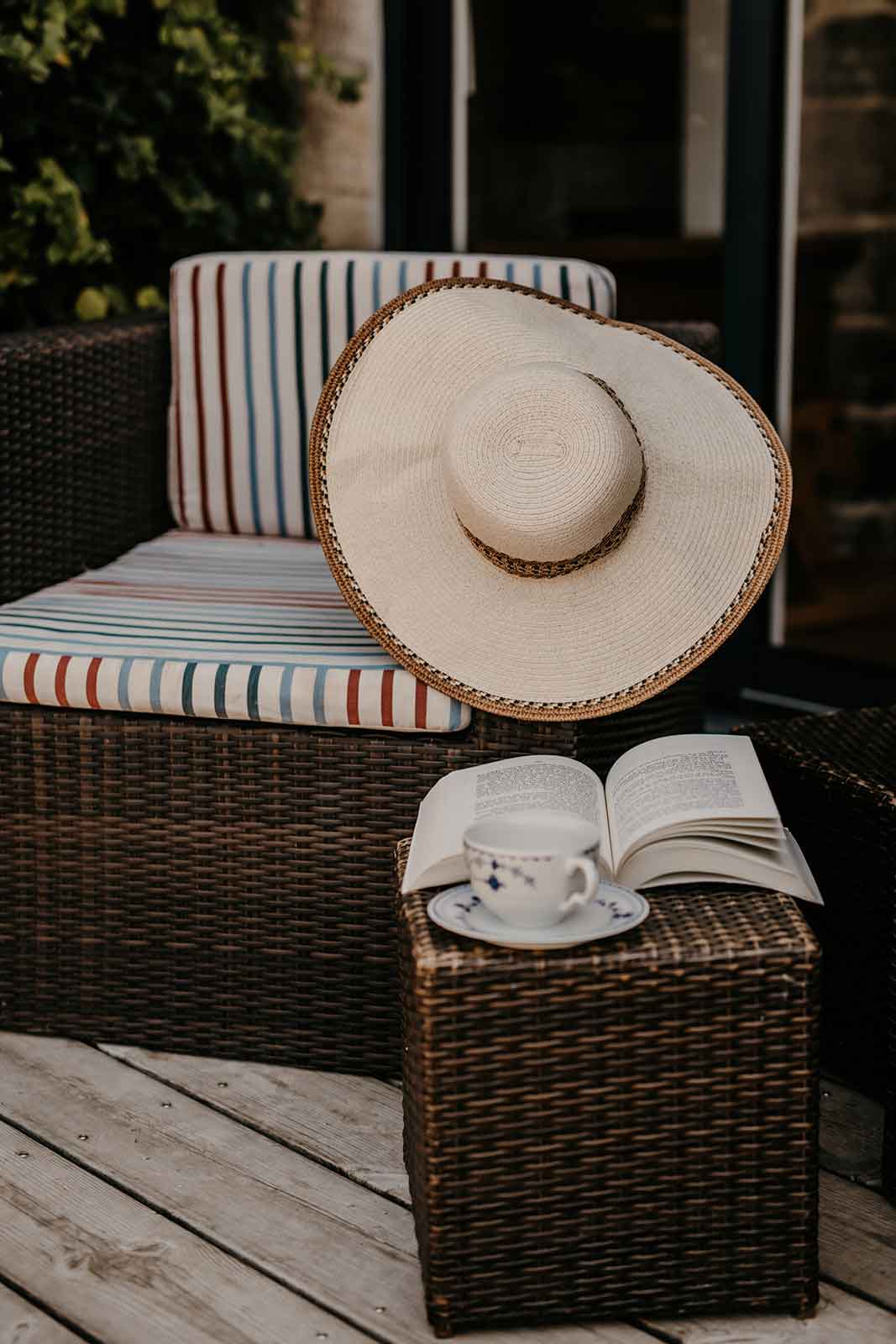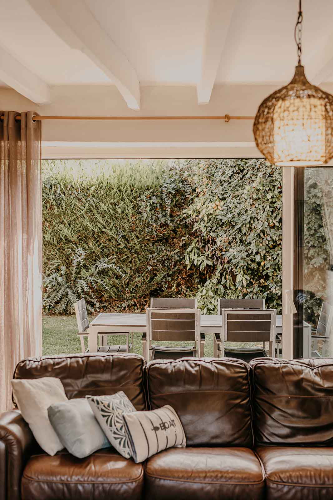 At the front, a sunny terrace catches the light throughout the day — a real favourite for guests to relax with a cocktail or sundowner. At the back is a private terrace with BBQ, tables and chairs.