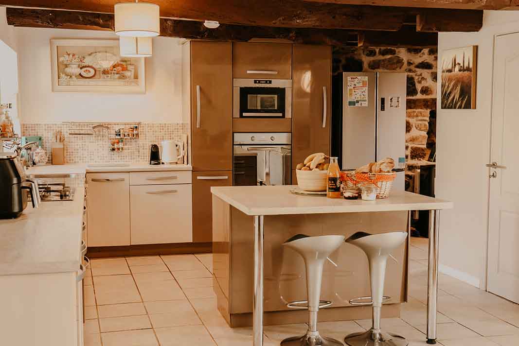 Le Pressoir is our flagship gîte — a stunning and spacious three-bedroom holiday home in the heart of Brittany, perfect for larger families, groups of friends, or multi-generational getaways. This beautifully restored gîte is brimming with authentic charm, from its original features to its warm, welcoming atmosphere.